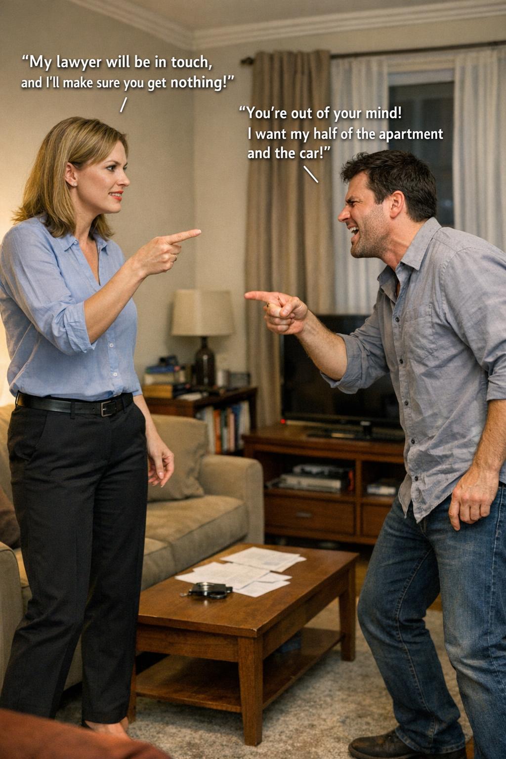 — Potřeboval jsem si to ověřit a ověřil jsem si to! I to bylo moje právo! — utrousil povýšeně. — A teď chci polovinu bytu.