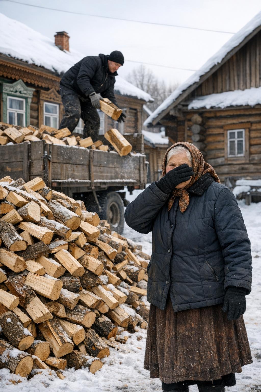 Hned následující ráno se před její bránou objevil rozměrný nákladní vůz, rozhodně ne ten malý, s jakým počítala. Dělníci beze slova začali skládat polena na zem a hromada rostla do velikosti, která dalece přesahovala její objednávku. Srdce se jí sevřelo a bušilo jako o závod, když sledovala, jak se před domem kupí dřevo, o němž věděla, že si ho nemůže dovolit zaplatit.