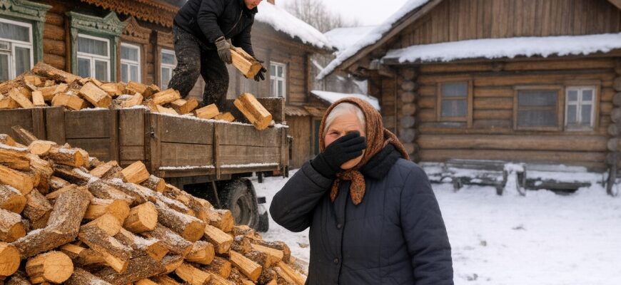 Hned následující ráno se před její bránou objevil rozměrný nákladní vůz, rozhodně ne ten malý, s jakým počítala. Dělníci beze slova začali skládat polena na zem a hromada rostla do velikosti, která dalece přesahovala její objednávku. Srdce se jí sevřelo a bušilo jako o závod, když sledovala, jak se před domem kupí dřevo, o němž věděla, že si ho nemůže dovolit zaplatit.