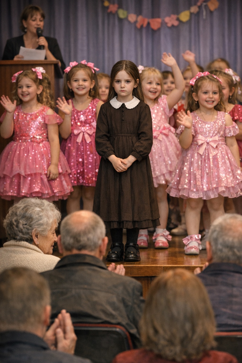 Vystoupení pokračovalo. Hodinu. Hodinu, která se zdála, že nikdy neskončí. Každá minuta byla věčnost. Každá píseň muka. Každý potlesk připomínka, že jsem tady a dívám se, jak je moje dcera ponižována.