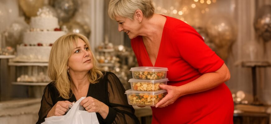 A tehdy se švagrová náhle dala do pohybu. Začala se přehrabovat ve své obrovské, věčně nacpané kabelce a s hlasitým klapáním pokládala na sněhobílý slavnostní ubrus… plastové dózy.