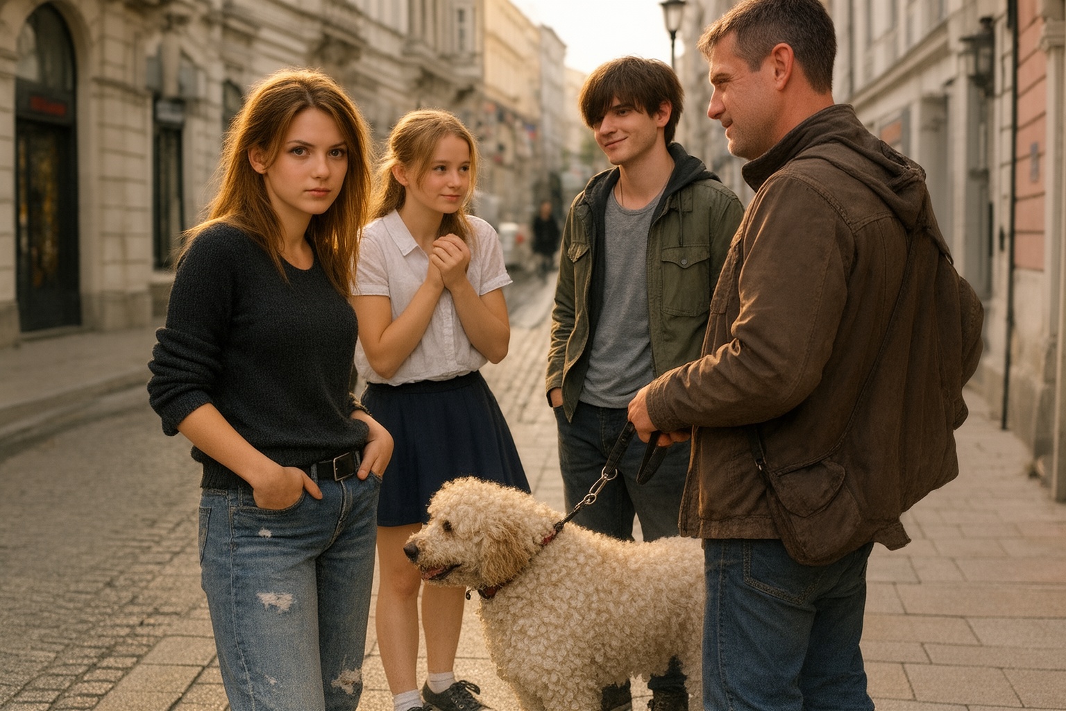 Když zjistily, že i ony chodí na stejnou školu, braly to jako znamení. Jako by se měl Matěj stát přirozenou součástí jejich světa – už jen proto, že měl psa. A tak se z nich postupně stala trojice.