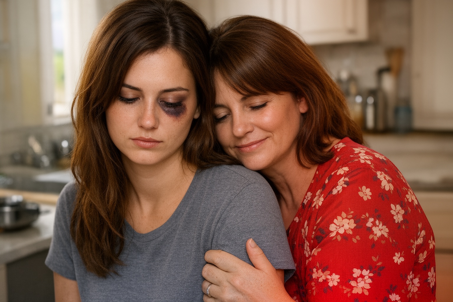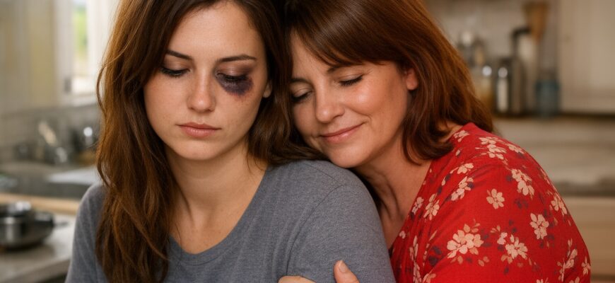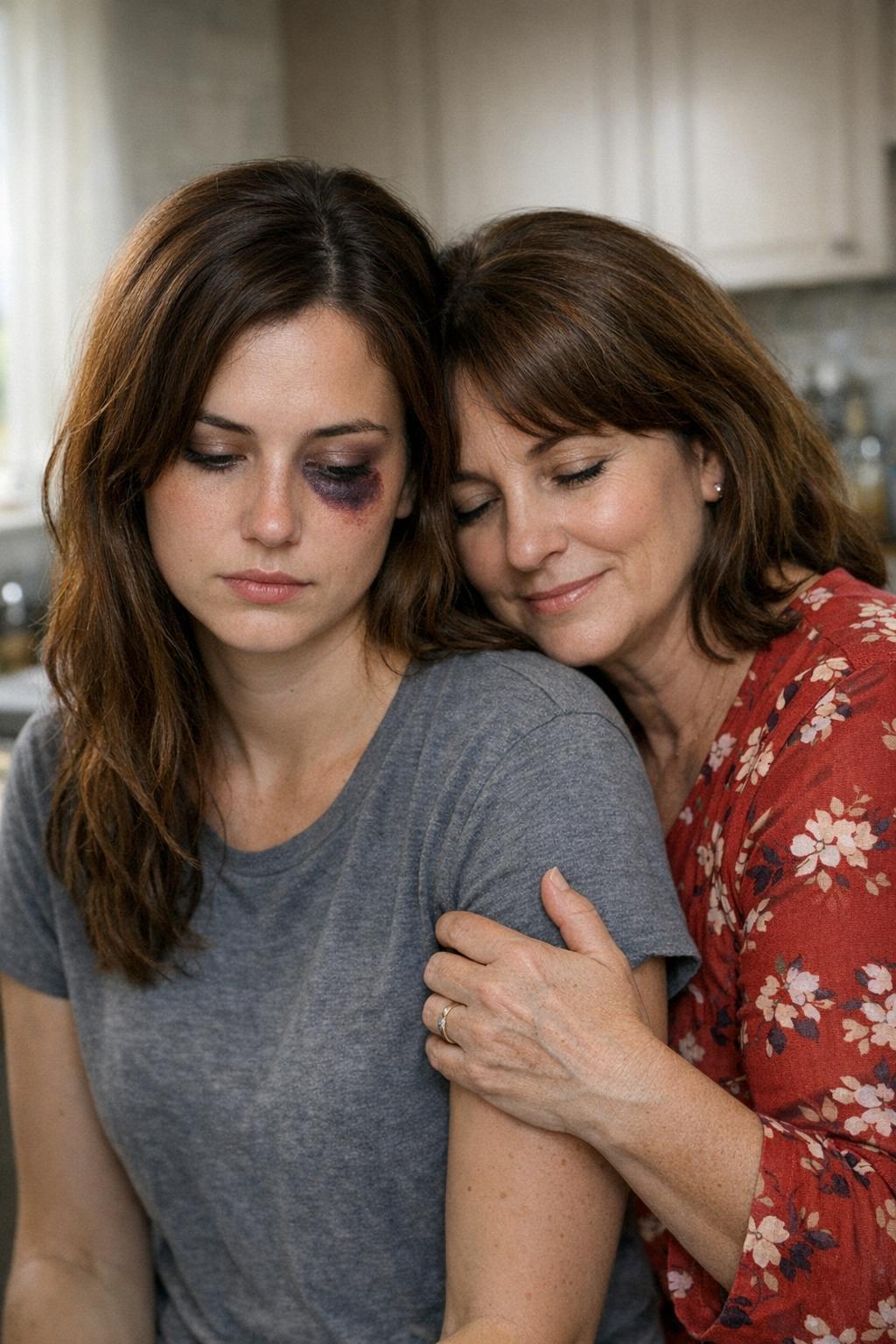 Udělala krok dovnitř a světlo z předsíně jí dopadlo na obličej. Musela jsem se zachytit futra, abych se nezhroutila. Levé oko měla oteklé tak, že…