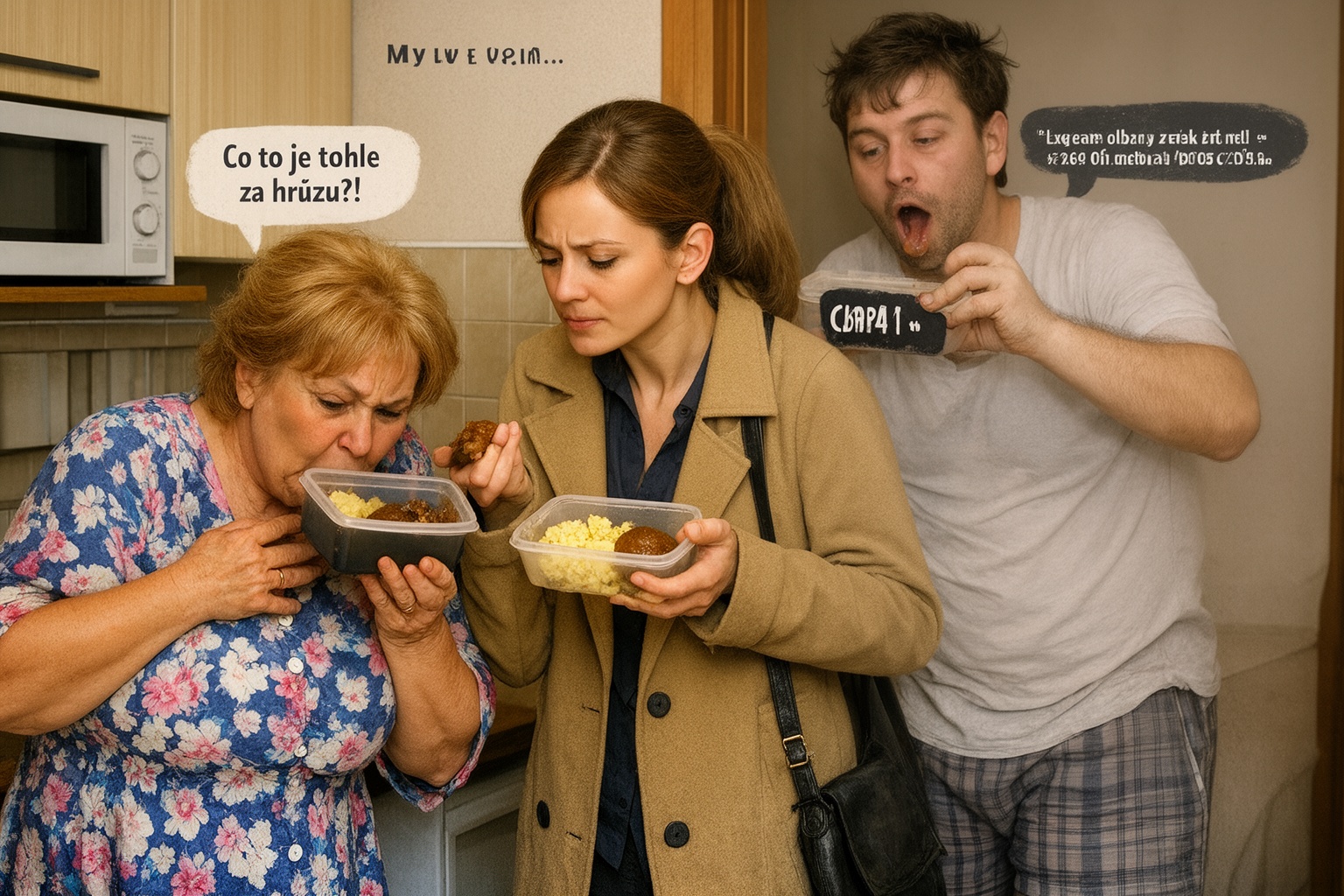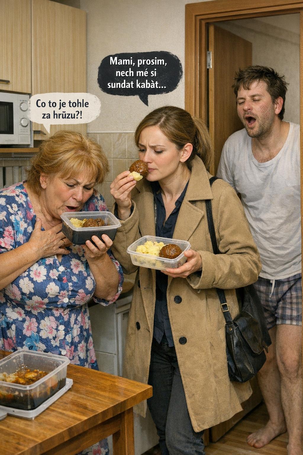 Otevřela jsem i druhý box – karbanátek s bramborovou kaší, všechno z lahůdek. Vonělo to báječně. Tchyně si hlasitě povzdechla, jako bych jí právě rozbila rodinný porcelán.
