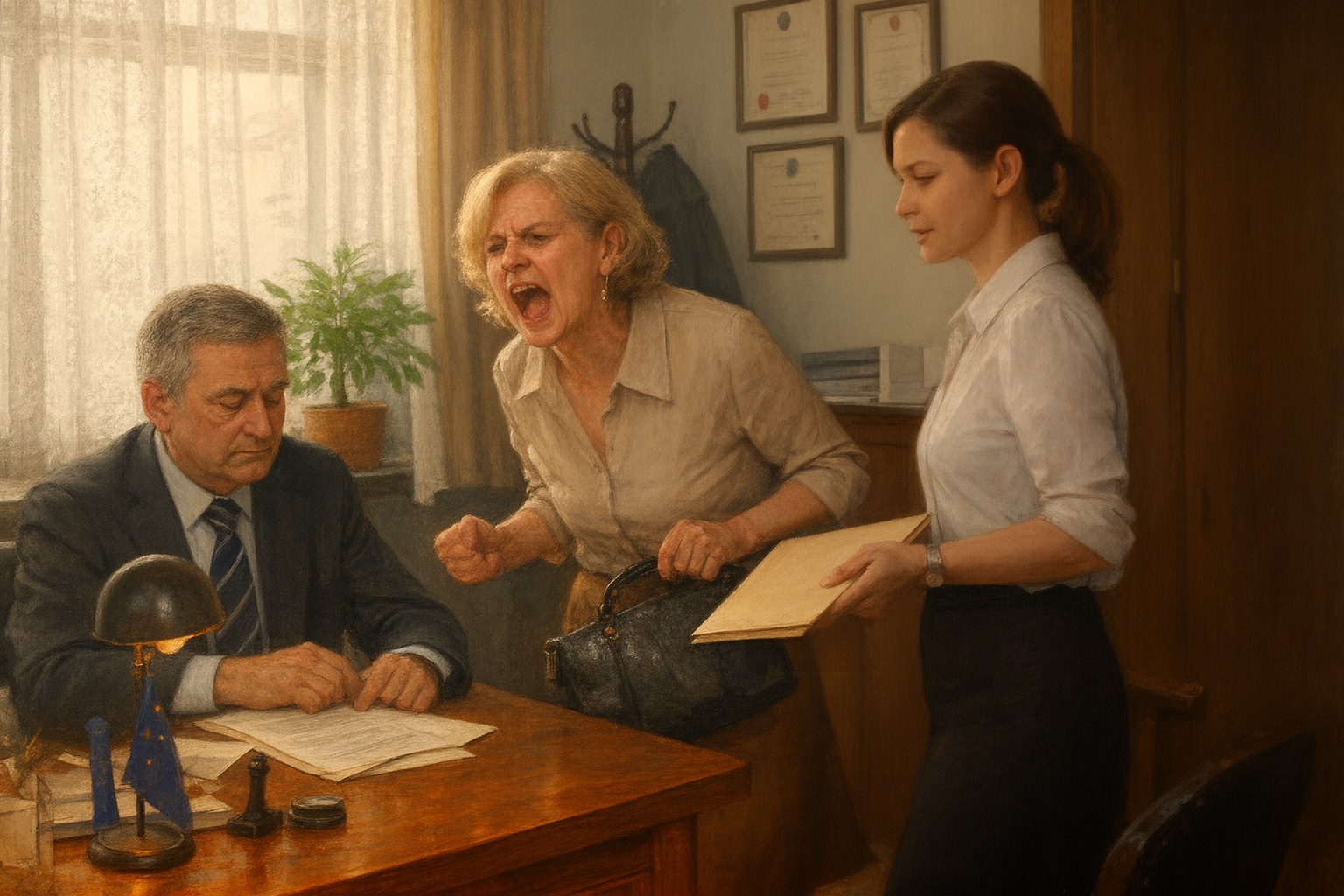 Miroslava Starýová zůstala sedět bez hnutí. V křesle ztuhla tak náhle, jako by zkameněla. Prsty sevřely kabelku tak silně, až jí zbělely klouby. Těkala pohledem od notáře ke snaše a zpět, jako by čekala, že se muž každou chvíli usměje a přizná hloupý žert.