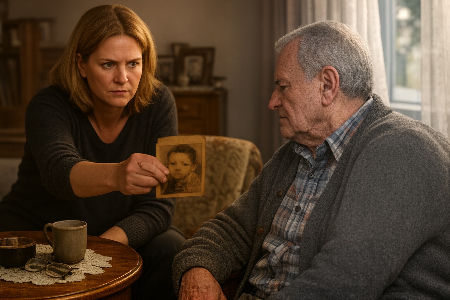 Prstem přejela po tváři dítěte a tiše pronesla: „Jestli se mě to netýká… tak to dítě nejsem já? Nebo snad ano? Neřekneš mi, že jsem adoptovaná?“ Její hlas zněl klidně, ale napětí bylo cítit v každém slově.