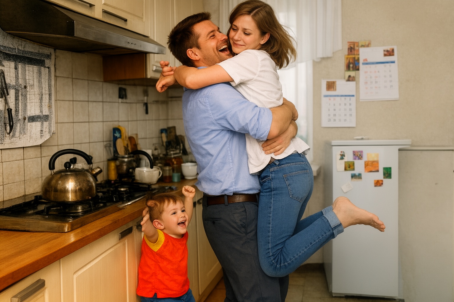 Popadl ji do náruče a roztočil ji uprostřed kuchyně. Matyáš nadšeně poskakoval kolem nich a napodoboval otce. Renata se usmívala, ale jen navenek. Uvnitř v ní křičel jediný hlas: Nechci to.