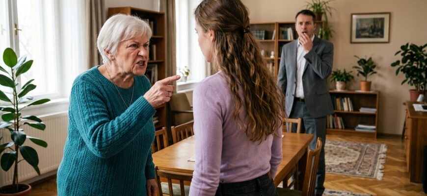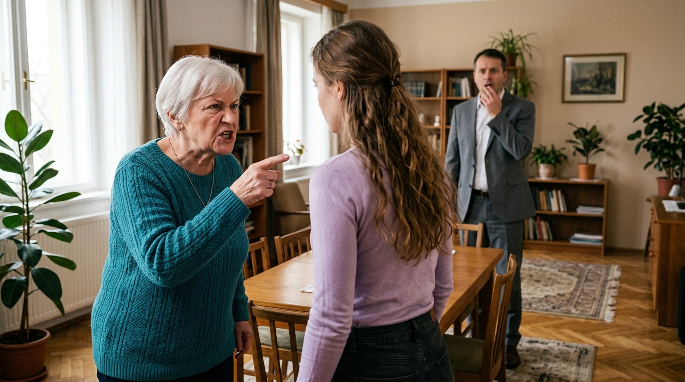 „Á, naše malá pomocnice,“ pronesla tchyně, aniž by se na ni podívala. „Polož to sem a běž zpátky.“